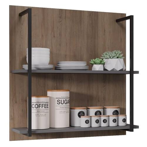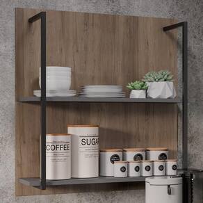 A Prateleira Industrial Cozinha Dupla com Painel Flora M24 Grafite/Freijó, da Mpozenato, é uma excelente opção para você que quer organizar e decorar espaços com um toque moderno e único.