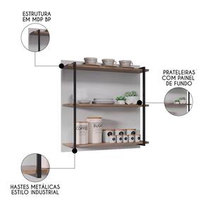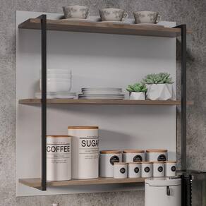 A Prateleira Industrial Cozinha Tripla com Painel Flora Z34 Freijó/Branco, da Mpozenato, é uma excelente opção para você que quer organizar e decorar espaços com um toque moderno e único.