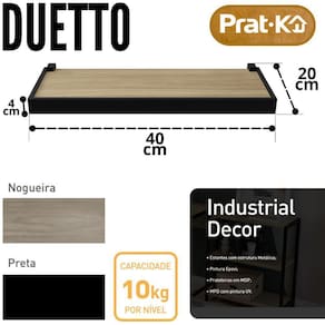 Com sua estrutura robusta e design minimalista, esta prateleira é perfeita para exibir objetos decorativos, livros, plantas e muito mais, adicionando um toque de personalidade a qualquer ambiente. Características principais:design industrial: o estilo industrial da prateleira parede industrial duetto adiciona charme e modernidade a qualquer espaço.Material de qualidade: construída com madeira nogueira de alta qualidade e suportes invisíveis de metal, garantindo durabilidade e resistência.Suporte invisível: os suportes invisíveis proporcionam um visual limpo e elegante, enquanto mantêm a prateleira firmemente fixada à parede.Dimensões ideais: com medidas de 20x40cm, oferece espaço suficiente para exibir uma variedade de objetos decorativos sem ocupar muito espaço na parede.Fácil instalação: acompanha todos os acessórios necessários para a instalação, tornando o processo simples e rápido. Instruções de instalação:selecione a parede onde deseja instalar a prateleira e marque os pontos de fixação de acordo com as medidas da mesma.Fixe os suportes invisíveis na parede usando os parafusos e buchas fornecidos, garantindo que estejam nivelados e firmemente fixados.Encaixe a prateleira nos suportes invisíveis e verifique se está nivelada antes de colocar os objetos.A prateleira parede industrial duetto da prat-k é a escolha perfeita para quem busca combinar funcionalidade e estilo em sua decoração. Adicione um toque de modernidade e organização ao seu espaço com esta elegante prateleira industrial. Qualquer dúvida, deixe sua pergunta nos comentários.Somos loja física com mais de 50 anos de tradição.Agradecemos a visita : estamos aguardando sua compra