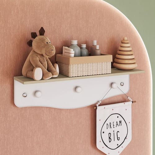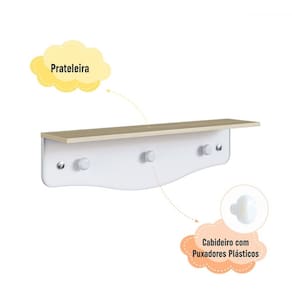 O(a) Prateleira Infantil Encanto com Cabideiro Carvalho Araguaia/Branco - Completa Móveis é produzido em MDP na escala de brilho Fosco, e possui um grau de dificuldade de montagem: Médio.