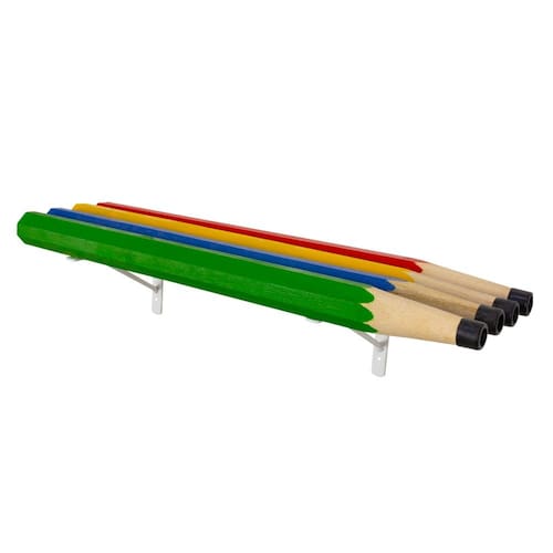 Prateleira Infantil Lápis Prateleira decorativa e funcional com frente em formato de lápis coloridos (amarelo, verde, vermelho e azul), ideal para expor livrinhos, brinquedos e objetos em quartos infantis, brinquedotecas e escolinhas.?