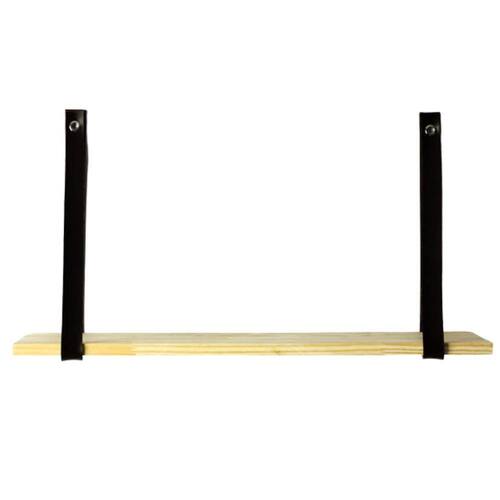 Especificações técnicas: - Material: Madeira pinus e alças de couro - Cor: Natural - Comprimento: 60cm - Suporta até 10kg de carga - Incluso: Prateleira e alças de couro