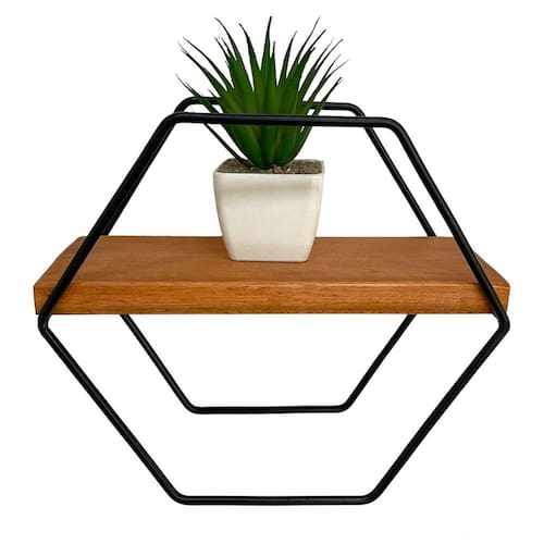 Com um design exclusivo, esta prateleira apresenta uma estrutura de ferro em formato hexagonal, trazendo um elemento visualmente atrativo e moderno para o seu espaço. A estrutura de ferro é cuidadosamente fabricada e recebe uma camada de pintura eletrostática de alta qualidade, garantindo durabilidade e resistência ao produto.