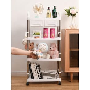 Prateleira Multiuso 4 Andares com 2 Gavetas Branca Esta prateleira carrinho é a solução perfeita para manter sua casa, escritório ou qualquer ambiente organizado de forma eficiente. Com seus quatro andares espaçosos e duas gavetas adicionais, oferece espaço suficiente para armazenar uma variedade de itens, desde livros e documentos até utensílios de cozinha e artigos de decoração. As rodinhas garantem mobilidade, permitindo que você mova facilmente a prateleira conforme necessário. Além disso, o design elegante em branco combina perfeitamente com qualquer estilo de decoração, enquanto a construção durável dos tubos de aço inox garante sua longevidade. Simplifique sua vida com a Prateleira Carrinho Organizador Multiuso Branca de 4 Andares com 2 Gavetas Características: Cor: BrancaAndares: 4, oferecendo ampla capacidade de armazenamento.Gavetas: 2, proporcionando espaço adicional para guardar itens menores.Dimensões: 50,5cm de comnto X 25,8cm de largura X 109,5cm de altura.Rodinhas: Equipado com rodinhas para facilitar o transporte e a movimentação.Material: Tubos de aço inox, garantindo durabilidade e resistência. Plástico PP + Aço Inoxidável.Montagem fácil: Nenhuma ferramenta necessária.Prateleira Multiuso 4 Andares com 2 Gavetas Branca Esta prateleira carrinho é a solução perfeita para manter sua casa, escritório ou qualquer ambiente organizado de forma eficiente. Com seus quatro andares espaçosos e duas gavetas adicionais, oferece espaço suficiente para armazenar uma variedade de itens, desde livros e documentos até utensílios de cozinha e artigos de decoração. As rodinhas garantem mobilidade, permitindo que você mova facilmente a prateleira conforme necessário. Além disso, o design elegante em branco combina perfeitamente com qualquer estilo de decoração, enquanto a construção durável dos tubos de aço inox garante sua longevidade. Simplifique sua vida com a Prateleira Carrinho Organizador Multiuso Branca de 4 Andares com 2 Gavetas Características: Cor: BrancaAndares: 4, oferecendo ampla capacidade de armazenamento.Gavetas: 2, proporcionando espaço adicional para guardar itens menores.Dimensões: 50,5cm de comnto X 25,8cm de largura X 109,5cm de altura.Rodinhas: Equipado com rodinhas para facilitar o transporte e a movimentação.Material: Tubos de aço inox, garantindo durabilidade e resistência. Plástico PP + Aço Inoxidável.Montagem fácil: Nenhuma ferramenta necessária.