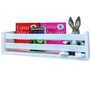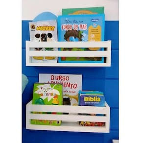 1 prateleira porta livros, brinquedos e multiuso branca. ( detalhe frente 2 ripas)