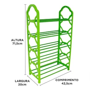 Características do Produto: Design Moderno e Simples: Sapateira desmontável de PVC stackable black shoe rack, ideal para até 10 pares de sapatos. Fácil Montagem e Desmontagem: A sapateira é prática de montar e desmontar, permitindo que você a utilize conforme sua necessidade. Capacidade para 10 Pares: Com 5 prateleiras, esta sapateira pode acomodar aproximadamente 10 pares de sapatos, tênis, sandálias, etc. Material Resistente: Fabricada com fortes tubos de metal e peças de plástico PVC, garantindo durabilidade e estabilidade.