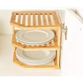 - organizador de prateleira: prateleira organizadora com três andares que permitem acomodar diferentes tamanhos de louças e objetos; - usabilidade: o formato vertical auxilia na otimização de espaço; - feita de bambu: material leve e ecologicamente correto. - fácil higienização: fabricado em material de fácil higienização.
