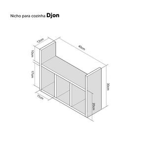 Com medidas de 30cm de altura x 40cm de largura x 12cm de profundidade, o nicho Djon é compacto e versátil, se encaixando perfeitamente em diferentes espaços.