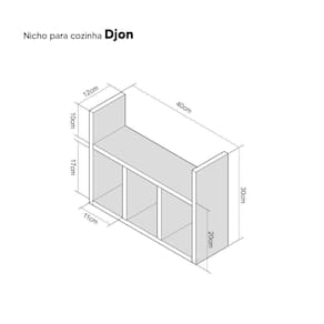Com medidas de 30cm de altura x 40cm de largura x 12cm de profundidade, o nicho Djon é compacto e versátil, se encaixando perfeitamente em diferentes espaços.