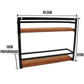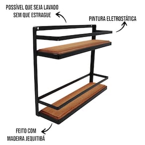 Prateleira porta temperos industrial condimentos 2 andares prateleira porta temperos e condimentos 2 andares, perfeita para organizar e decorar sua cozinha ou área gourmet, por exemplo. Tem uma ótima construção em madeira jequitibá e aço com pintura eletrostática, que evita que a prateleira enferruje com o tempo ou estrague mais rápido. Ótimo para quem busca praticidade e beleza em um só produto