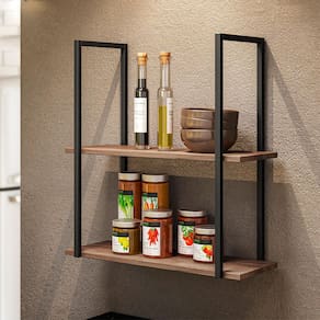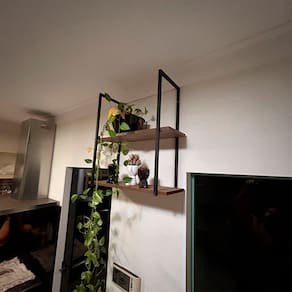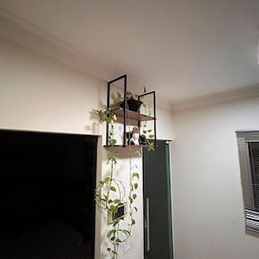 A Prateleira Suspensa Aurora é multifuncional e versátil, adequada para qualquer ambiente. Suas prateleiras em BP de 15mm oferecem resistência contra umidade e arranhões, mantendo a aparência natural da madeira. Com estruturas em metal antioxidante e pintura eletrostática, pode ser instalada no teto ou na parede. Uma fusão de materiais que traz um toque moderno e industrial ao seu espaço. A Prateleira Suspensa Aurora foi criada para inspirar a sua criatividade e tornar o ambiente ainda mais belo.