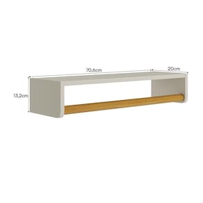 Prateleira Theo 70,6cm Areia Fosco/amadeirado - Reller Móveis Areia Fosco/amadeirado Prateleira Theo 70,6cm - Reller Móveis A Prateleira Theo é o complemento essencial para o quarto do seu bebê. Fabricada com material de alta qualidade, sendo 100% MDF, esta prateleira garante resistência e durabilidade para acompanhar o crescimento do seu pequeno(a). Sua pintura UV confere um acabamento impecável, proporcionando um toque de elegância ao ambiente. Equipada com um cabideiro em madeira, oferece praticidade para manter as roupinhas do bebê sempre organizadas e à mão. Além disso, sua versatilidade permite montá-la de duas formas diferentes, adaptando-se perfeitamente às necessidades do espaço. Seja para exibir os iros livros do seu bebê, os seus brinquedos favoritos ou itens de decoração encantadores, a Prateleira Theo é a escolha perfeita para tornar o quarto do seu bebê ainda mais acolhedor e funcional. Adquira já a sua e transforme esse espaço tão especial com estilo e praticidade. ESPECIFICAÇÕES: - Produto 100% MDF - Pintura UV - 1 Cabideiro em madeira - É possível montar de duas formas