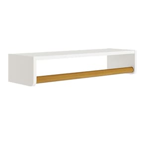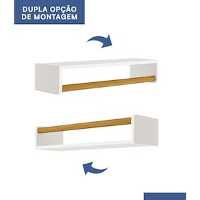 Prateleira Theo 70,6cm - Reller Móveis A Prateleira Theo é o complemento essencial para o quarto do seu bebê. Fabricada com material de alta qualidade, sendo 100% MDF, esta prateleira garante resistência e durabilidade para acompanhar o crescimento do seu pequeno(a). Sua pintura UV confere um acabamento impecável, proporcionando um toque de elegância ao ambiente. Equipada com um cabideiro em madeira, oferece praticidade para manter as roupinhas do bebê sempre organizadas e à mão. Além disso, sua versatilidade permite montá-la de duas formas diferentes, adaptando-se perfeitamente às necessidades do espaço. Seja para exibir os primeiros livros do seu bebê, os seus brinquedos favoritos ou itens de decoração encantadores, a Prateleira Theo é a escolha perfeita para tornar o quarto do seu bebê ainda mais acolhedor e funcional. Adquira já a sua e transforme esse espaço tão especial com estilo e praticidade.