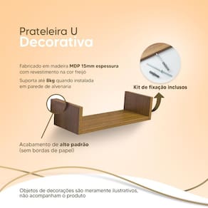Prateleira U 80 x 15cm Freijó Suporte Invisível. A prateleira Crie Fácil foi desenvolvida pensando em deixar o seu ambiente mais organizado e criativo de forma prática e simples.