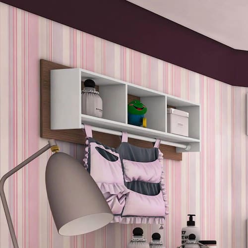A Prateleira Universal Stile é uma ótima opção para decorar e organizar o quarto do seu bebê, ficando perfeita acima da cômoda. Possui divisão de três nichos, possibilitando uma decoração harmoniosa, seu suporte para cabideiros proporciona que seja acomodado diversos itens, fraldas e outros utensílios.
