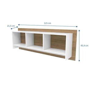 Produzida em MDF 15mm com acabamento em UV Branco Acetinado com fundo na cor Duetto, a prateleira mdf é o móvel ideal para sua você, que pensa em mobiliário multifuncional.