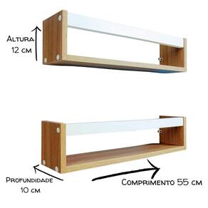 mdf 15mm com acabamento madeira , superior á pintura em qualidade e durabilidade. Produzido com fita de borda em pvc, incomparável ás de papel utilizadas no mercado. ========================= kit com 2 prateleiras para livros, brinquedos, itens de cozinha, banheiro etc. detalhe: marrom ripa branca =========================