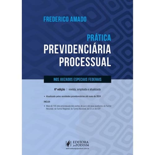 Atualizada com as novidades previdenciárias até maio de 2024 INCLUI: • Mais de 100 atos processuais das partes, do juiz e de seus auxiliares, da Turma Recursal, da Turma Regional, da Turma Nacional, do STJ e do STF POR QUE ESCOLHER O LIVRO “PRÁTICA PREVIDENCIÁRIA PROCESSUAL NOS JUIZADOS ESPECIAIS FEDERAIS”? Esta obra configura a realização de um antigo sonho: elaborar um livro que abordasse o passo a passo do exercício da prática previdenciária no âmbito dos Juizados Especiais Federais de todos os atores do processo, refletindo a experiência acumulada na minha atuação em mais de dez anos como representante judicial do INSS na condição de Procurador Federal. Ao longo de tantos anos de magistério em cursos de especialização e de prática previdenciária, ou até mesmo nas aulas para concursos públicos, já recebi centenas de pedidos para escrever um livro prático sobre o Direito Previdenciário no processo judicial. E como a maior parte das ações previdenciárias tramita no JEF, esse foi o campo mais fértil para fazê-lo. Poucas atitudes na vida me deixam mais zangado do que uma tentativa de fraude judicial contra a Previdência Social, como falsos depoimentos ou falsificações documentais visando à concessão de benefício previdenciário indevido. Nesta 6ª edição, 2024, atualizamos pelas novidades previdenciárias até maio de 2024 , com novos julgados e alterações normativas. Espero que, além de apreciar o texto, este seja útil no exercício da prática judicial previdenciária. Bom estudo! Frederico Amado Marca: JUSPODIVM **