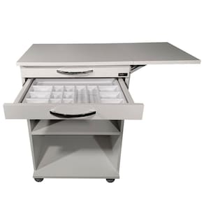 DEKI MÓVEIS CLÍNICOS Tradição em móveis na área de saúde desde 1986! O Kart Deki possui uma gaveta com corrediças metálicas, trazendo muita organização para sua clínica. É produzido com materiais de alta qualidade e tecnologia, garantindo a durabilidade do produto desde que respeitadas as orientações de uso. Este Kart pode ser utilizado separadamente ou em conjunto aos demais móveis que compõem a linha da DEKI. Confira e leve já!