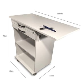 Composição: Mesa auxiliar com 1 (uma)gaveta (sendo a primeira apenas para movimentar o móvel), Possui 1 (uma) Aba retrátil super funcional e 2 (dois) compartimentos abertos