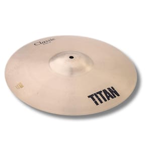 - Marca: Titan - Possui uma abertura e som mais controlados - Excelente custo benefício - Prato feito em Liga Bronze B20 com acabamento Clássico