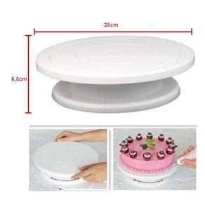 Prato Giratório BailarinaBailarina Ideal para montar Bolos e decorarA Bailarina é ideal para confeitar bolos e tortas com muito mais praticidade, gira 360º manualmente, bem semelhante as utilizadas por grandes Chefs.Limpeza:Para melhor manutenção utilize sabão neutro e esponja macia, secar com flanela. Evite o uso de produtos abrasivos.- Suporta até 2 Kg- Sistema de rolamento SIMPLES e estável para confeitar com maior precisão- Decore Bolos com maior praticidade e de forma profissional- Fácil de Limpar, produto plástico atóxico- Material: PlásticoDimensões: 27,5 cm x 6,5 cmItens Inclusos: