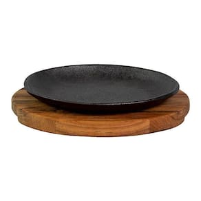 Prato de ferro fundido 24cm com base madeira