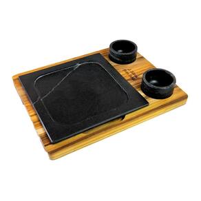 Prato com 02 Molheiras em Pedra Sabão e Suporte P 20x20cm