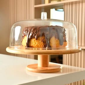 • 1 Prato em Bambu 1 Cúpula em Acrílico