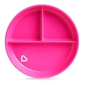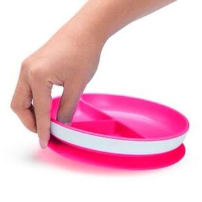 Prato Treinamento Com Ventosa E Divisórias Munchkin ® Rosa O Prato de treinamento infantil com ventosa da Munchkin® ajuda na hora das refeições dos pequenos. A ventosa forte ajuda a evitar sujeiras e derramamentos. Possui guias de liberação rápida na base da ventosa que permite fácil remoção do prato pelo adulto. O prato com ventosa Munchkin® vem com divisórias que ajudam a separar e ensinar a crianças sobre os alimentos mostrando-os separadamente. Leve, prático e fácil de lavar, esse prato é ideal para tornar a nova fase da criança ainda mais especial. • Características: - Possui 3 divisões: - Idade recomendada: a partir de 6 meses; - Material: PPCO e TPE, livre de BPA Bisfenol , PVC e Phtalato; - Não vai ao micro-ondas e em água fervente; - Pode ser na parte superior da máquina de lavar louças; - Medidas aproximadas: 17,5 cm de diâmetro e 3,7cm de altura. A Munchkin é uma marca americana mundialmente conhecida pelos seus produtos inovadores, modernos, funcionais e de alto padrão de qualidade para bebês e crianças. Marca: Não Informado Ean: 0735282114731