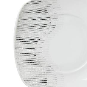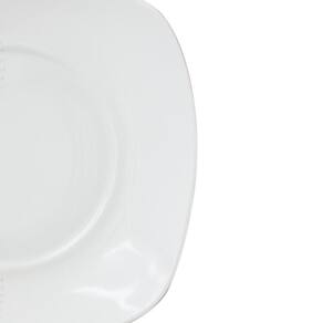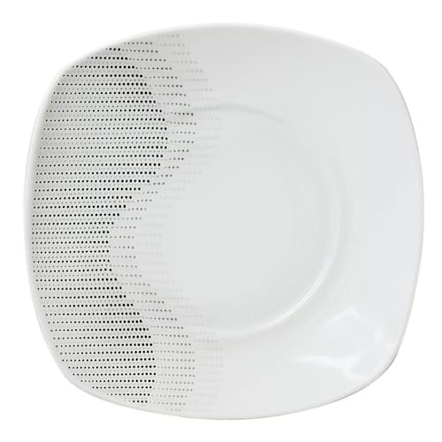 O Prato segue a nova tendência e traz formato quadrado com bordas arredondadas que aposta na autenticidade e no contraste de cores, trazendo à sua mesa mais charme e sofisticação nos momentos de suas refeições. É produzido em porcelana de altíssima qualidade na cor branco com detalhes preto e cinza que traz uma sensação de leveza a sua mesa. O prato é perfeito para a decoração de sua mesa posta para suas reuniões, comemorações, cerimônias ou qualquer que seja o evento. O design moderno fará que outros itens de sua mesa ganhem destaque e formem um ambiente mais acolhedor e elegante. Pode ser levado ao micro-ondas e à lava louças.