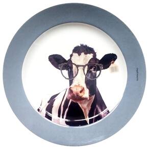 Transforme sua mesa ou decoração com o Prato de Porcelana Vaca Fafá - 25,5 cm, uma peça que combina elegância, irreverência e charme de forma única. No prato Fafá, uma estilosa vaca usando óculos, esbanja personalidade e modernidade. A borda em tom de cinza adiciona um toque sofisticado, tornando o prato uma peça atemporal e versátil.