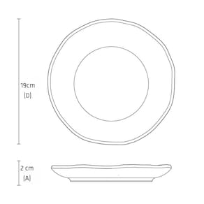 Garantia: 90 dias / Peso: 0,408kg / Cor predominante: preto / Referência: 141473901; Dimensões: 19cm (D) x 2cm (A); Modelo: Orgânico Preto Matte; Conteúdo: 1 prato raso para sobremesa.