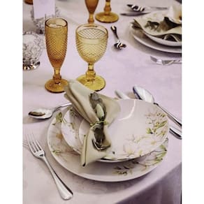 O prato de sobremesa Tramontina Magnólia combina elegância e delicadeza em cada detalhe. Sua base branca é enriquecida com suaves tons de rosé e bege, além de galhos verdes que formam um desenho floral encantador. A padronagem de leques ao fundo adiciona um toque clássico e sofisticado. Produzido em porcelana tradicional Tramontina, é a escolha ideal para quem valoriza uma mesa refinada e atemporal. Perfeito para servir doces e sobremesas com charme em qualquer ocasião e estação do ano. Para facilitar a higienização, o prato de porcelana pode ser levado a lava louças.