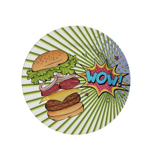Prato de Sobremesa Linha Burger Collection Cerâmica Alleanza Dimensão : 19,5 cm de diâmetro Peso : 380 gramas Material : Cerâmica Feldspática Peças elaboradas em cerâmica Feldspática branca de alta resistência, com processo de decoração digital, sobre a base branca. Produto Não Refratário. Pode ser levada ao micro-ondas e lava-louças. Não libera substancias tóxicas. Tipo de embalagem: Caixa parda. : 90 dias por defeito de fabricação. Podem ocorrer pequenas variações de tonalidades de cor, brilho, textura e tamanho das peças, em função de fatores relacionados ao processo de transformação de matérias primas naturais e variações existentes nas etapas de conformação, decoração e queima.