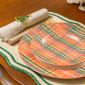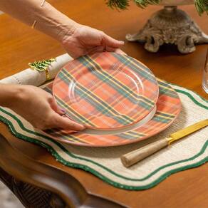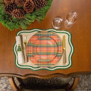 Prato de Sobremesa Copa e Cia Aquarelle Natal em Cerâmica Xadrez -