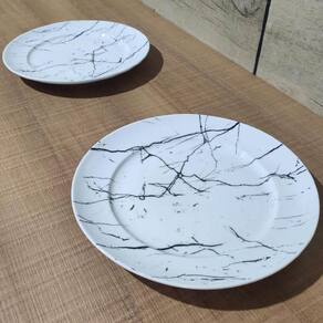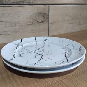 Prato de Sobremesa de Porcelana Raso Redondo 20,5cm Germer Mármore Branco