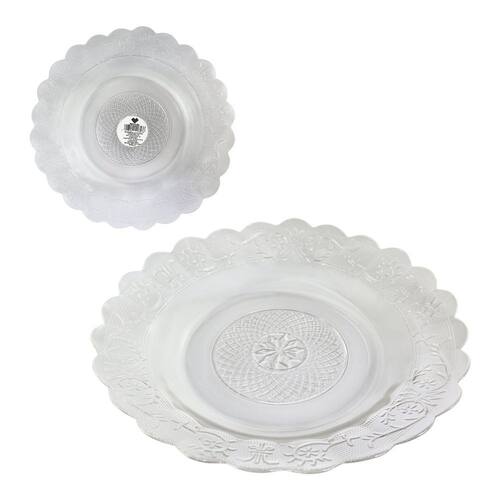 Especificações; -Dimensões aproximadas do produto sem embalagem: diâmetro 21,5cm / Profundidade 3cm / Espessura 3mm -Dimensões aproximadas do produto com embalagem: 26cm largura / 26cm comprimento / 9cm Altura -Peso: 600gr. -Peso referente a uma peça: 370g -Composição: Vidro