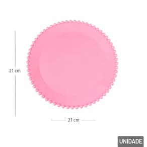 Prato Decorativo Plástico 21cm Redondo Rosa Dê um toque de elegância e delicadeza à sua decoração com o Prato Decorativo Rosa. Ideal para compor ambientes com charme e funcionalidade, este prato decorativo é perfeito para enfeitar mesas, aparadores, estantes ou até mesmo para criar composições com velas, flores ou pequenos objetos decorativos.\nCom formato redondo e 21cm de diâmetro, ele apresenta proporções equilibradas para uso isolado ou em conjunto com outras peças. O grande destaque do design está nos detalhes em bolinhas em relevo ao redor da borda, que adicionam textura e sofisticação à peça. Esses elementos conferem ao prato uma estética delicada e refinada, perfeita para quem valoriza os pequenos detalhes.\nFabricado em plástico resistente e leve, é uma peça prática, fácil de limpar e durável. Informação Adicional Marca : UNIBRASIL Tipo de material : Plástico Cores ou Estampa : Rosa Dimensões do Produto : 1,5 X 21 X 21 CM Dimensões da Embalagem : 1,5 X 21 X 21 CM Peso Bruto (Gramas) : 0.076 Marca: Não Informado
