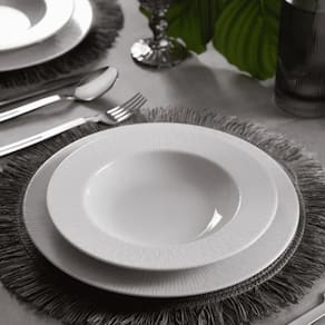 Prato Fundo Tramontina Santorini em Porcelana - 23 cm O Prato Fundo Tramontina Santorini é ideal para servir sopas, caldos, massas e preparações com molhos, unindo funcionalidade e sofisticação. Produzido em porcelana de alta qualidade, seu design refinado e decoração discreta proporcionam elegância à mesa posta em qualquer ocasião. Características do produto: Diâmetro: 23 cm Material: Porcelana tradicional com acabamento vitrificado Design: Formato redondo com bordas suaves e decoração delicada em tons neutros, típica da linha Santorini Acabamento: Superfície lisa e brilhante, com toque fino e agradável Diferenciais: Porcelana com baixa porosidade, que impede a absorção de líquidos e odores Alta resistência mecânica, ideal para o uso diário Compatível com micro-ondas e lava-louças, oferecendo maior praticidade Peça versátil, adequada para refeições com caldos, massas ou entradas sofisticadas Cuidados recomendados: Lavar com esponja macia e sabão neutro Não utilizar em forno convencional ou sobre chama direta Evitar produtos abrasivos que possam danificar o acabamento da porcelana Marca: Não Informado Ean: 7901041402606
