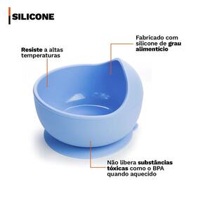 Prato Fundo Bowl Ventosa Em Silicone Bebê Infantil - Azul