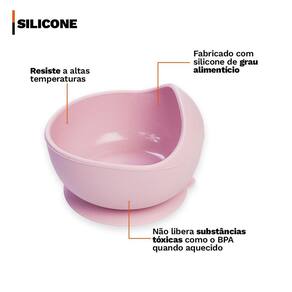 Prato Fundo Bowl Ventosa Em Silicone Bebê Infantil - Rosa