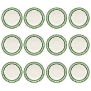 Características do Produto: Fabricante: Oxford Marca: Biona Material do Produto: Cerâmica Cor: Branco e Verde Conteúdo da Embalagem: 12 un Uso: Resistente a micro-ondas e resistente a lava-louças Linha: Campestre Formato: Redondo Diâmetro: 21,5 cm