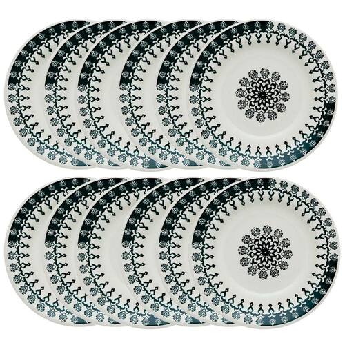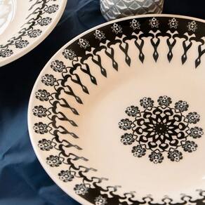 Prato Fundo de Cerâmica Estampa Donna Folk 22cm 12 Unidades - Biona 061406