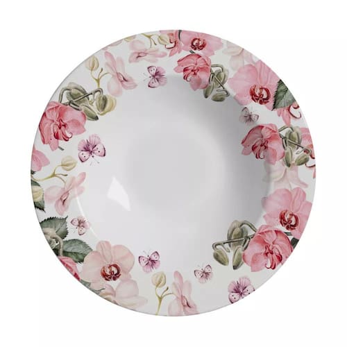 Contendo 6 pratos fundos com 25 cm de diâmetro.