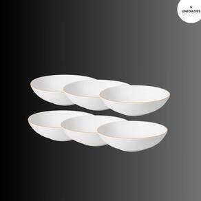 Jogo Prato Fundo Porcelana Branca Filete Ouro Legacy Gold 20,5cm 6un L`Hermitage