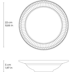 Marca Porto Brasil Cerâmica Coleção Ravenna Linha Roma Branco Material Cerâmica Feldspática Cor Predominante da Base Branco Composição 1 Prato Fundo Dimensões do Produto Ø 22cm A = 5cm