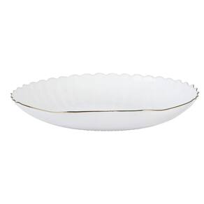 Prato Fundo Fullfit Tetis em Vidro Opalino Gold Rim 22,9cm - Sofisticação e Leveza à Mesa O Prato Fundo Fullfit Tetis combina design elegante com um toque moderno para valorizar a apresentação das refeições. Fabricado em vidro opalino branco com acabamento em borda dourada gold rim , a peça une sofisticação, leveza visual e versatilidade, ideal para o dia a dia ou para composições especiais. Com 22,9cm de diâmetro, é ideal para servir sopas, caldos e massas com charme e praticidade. Destaques do produto: Design refinado: Acabamento em vidro opalino branco com borda dourada, proporcionando elegância à mesa. Material resistente: Vidro opalino de alta qualidade, leve, durável e de fácil limpeza. Tamanho ideal: 22,9cm de diâmetro, perfeito para porções individuais de pratos fundos. Versatilidade: Ideal para o uso cotidiano ou para compor mesas em ocasiões especiais. Fácil manutenção: Pode ser lavado manualmente ou em lava-louças. Especificações: Marca: Fullfit Linha: Tetis Gold Rim Material: Vidro Opalino Diâmetro: 22,9cm Cor: Branco com borda dourada Adicione leveza, requinte e funcionalidade à sua mesa com o Prato Fundo Fullfit Tetis em Vidro Opalino. Marca: Não Informado