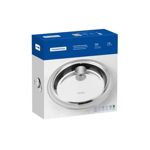 Nada como utensílios que trazem praticidade e bom gosto para nossa cozinha. O Prato Fundo Tramontina Ciclo em Aço Inox com Tampa de Vidro 39 cm de diâmetro atende as exigências que você encontrar na preparação de suas receitas. É produzido totalmente em aço inox, material que garante alta durabilidade e higiene. Perfeito para servir seus melhores pratos, ele encanta também por seu design: possui acabamento em brilho com detalhes em alto relevo nas bordas, dando um toque de beleza ao ambiente. Acompanha tampa de vidro que permite a visualização dos alimentos, mantendo-os quentinhos por mais tempo. É a escolha certa para tornar seu dia-a-dia na cozinha mais gostoso!