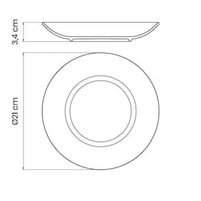 EAN13: 7898683608445 DUN14: 17898683608442 NCM: 6911.10.90 Peso Líquido: 0,3762 kg. Peso Bruto: 0,3947 kg. Metragem: 0,000794 m³. Dimensões Produto (Compr. X Larg. X Alt.): 210x 210x 34 mm. Diâmetro: 21,0 cm. Cor 1: FFFFFF Hexa